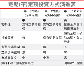 近來投資市場波動大,投資策略必須更靈活。為使投資人買基金更科學化,銀行的定期定額、定期不定額服務愈來愈多元,近來有銀行有別傳統的逆勢加碼策略,新增「順勢加碼、自由設定、逆勢加碼」三大策略任你設。