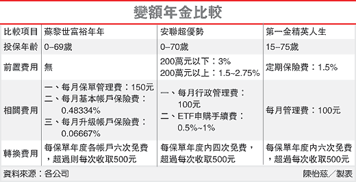 市售變額年金琳瑯滿目,保戶可以仔細挑選,保單所連結的投資標的,是否涵蓋全球不同地區、市場、產業與幣別,以分散風險,發揮保險資產成長潛力。