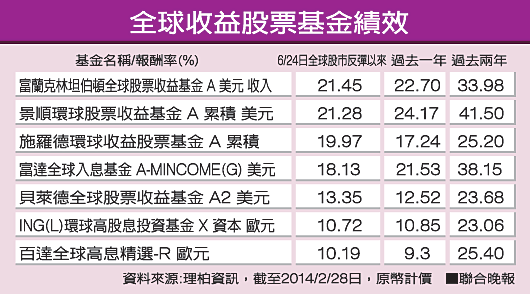 以全球收益型基金為例,平均其一年、二年有10%-20%以上收益計算,這對只有1%-3%定存族而言,其收益率誘人。