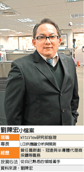 市調機構WitsView研究部協理劉陳宏,長期研究面板供需與整個LCD供應鏈,他依據自身的經驗認為,投資理財最好從自己熟悉的領域著手,勝算會比較大,績效也會比較好。