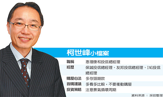 柯世峰在資產管理業已有20多年的工作經驗,他說,進入這個行業之後,才有正確的理財觀念,不過,也是經過多年的實務操作與市場多空考驗後,才體會出理財的一番心得。